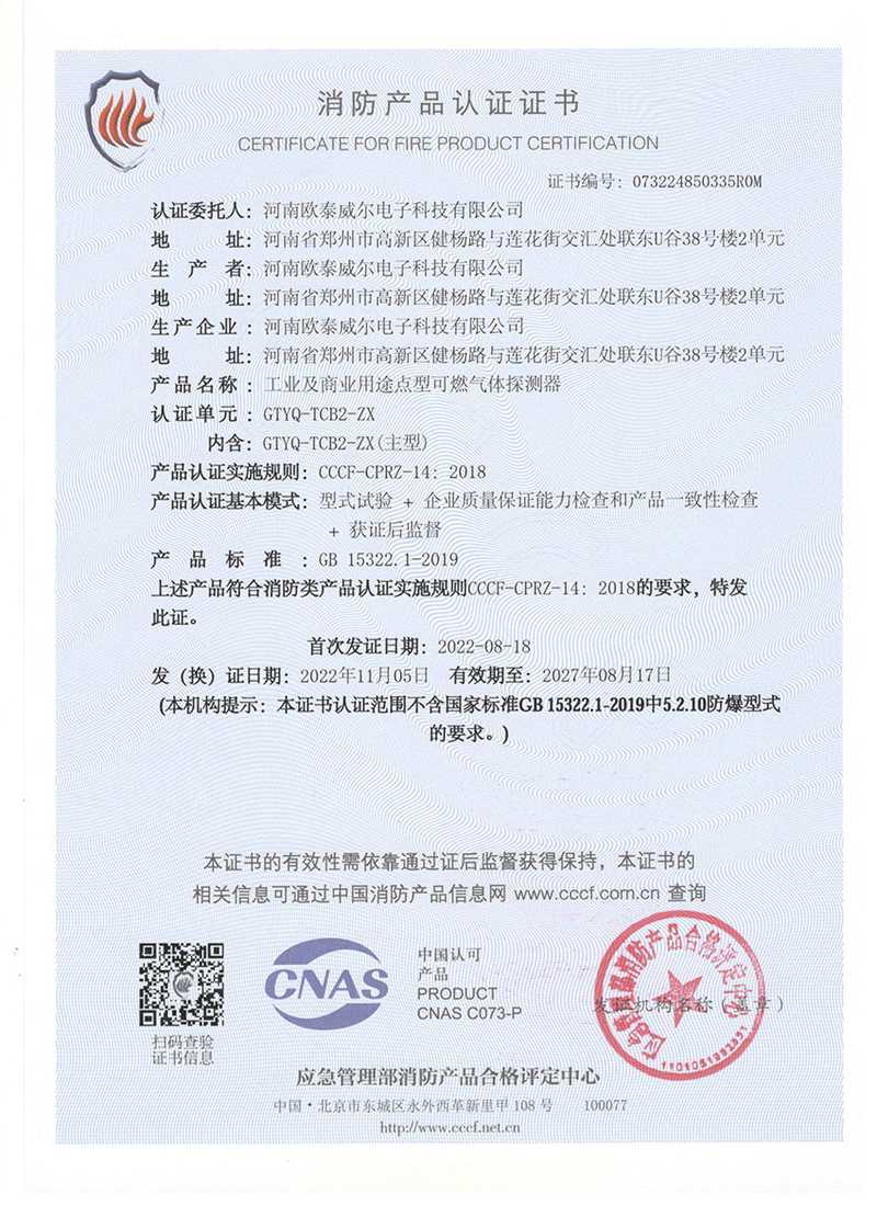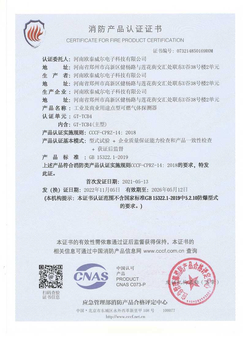 歐泰威爾作為國(guó)內(nèi)較知名的物聯(lián)網(wǎng)氣體探測(cè)儀器制造商,公司高度重視與國(guó)內(nèi)外大專院校的技術(shù)創(chuàng)新與學(xué)術(shù)成果交流,擁有專業(yè)氣體探測(cè)研發(fā)機(jī)構(gòu),專業(yè)質(zhì)檢生產(chǎn)工藝及相關(guān)檢測(cè)設(shè)備,技術(shù)力量雄厚,并不斷致力于產(chǎn)品品質(zhì)提升,公司及產(chǎn)品先后取得國(guó)家防爆電氣產(chǎn)品合格證、國(guó)家防爆電氣安裝、修理、維護(hù)資格證,國(guó)家應(yīng)急管理部消防產(chǎn)品CCCF認(rèn)證,國(guó)家計(jì)量器具形式批準(zhǔn)證書等并在國(guó)家權(quán)威部門形式注冊(cè)。